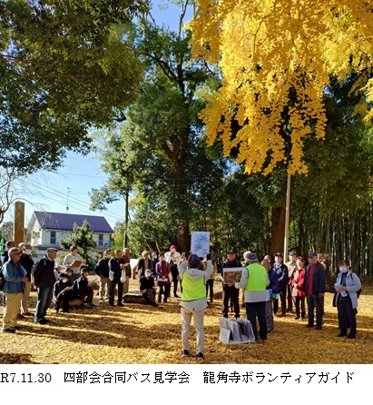 予定よりも早く龍角寺に到着し、ボランティアガイドの久保田様から「龍伝説・古墳群との関わり ・国指定文化財の銅造薬師如来坐像等」について詳しい説明を伺いました。