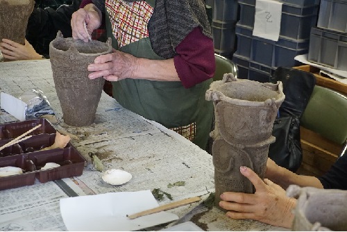 2週目は会員作成土偶を参考に形づくりを行いました。