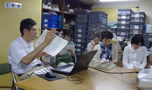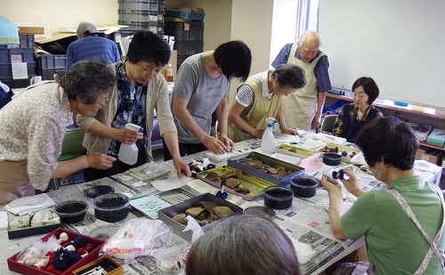 そのせいか、今回は一般の参加者が会員数を上回り、小学生も4名参加しています。 1週目は、市川博物館学芸員による基礎知識を学んだあと、用土づくりを行いました。