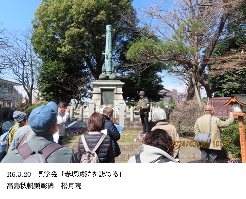 麓の板橋区立郷土資料館で、赤塚の歴史、武蔵千葉氏の歴史、高島秋帆に関する説明をつぶさに見る。12:30、一旦解散し昼食をとる。