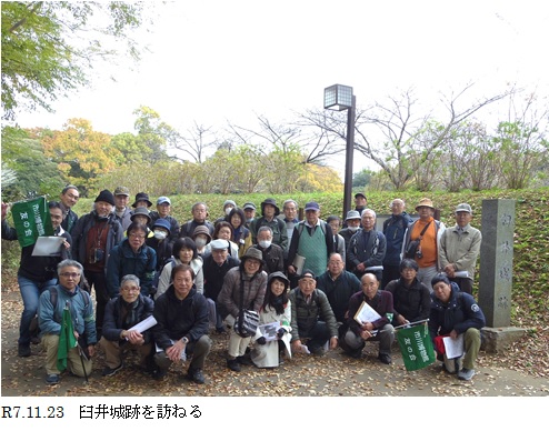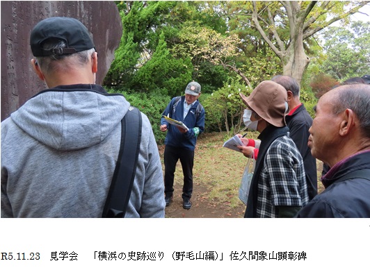 今回は多くの応募者がありましたが抽選をせずに対応することとし、2班に分けて行動することにしま した。勤労感謝の日の当日、時には強い北風も吹きましたが晴天に恵まれて、参加した役員や歴史部会幹事の協力を得て無事に予定どおり見学会を実施することができました。