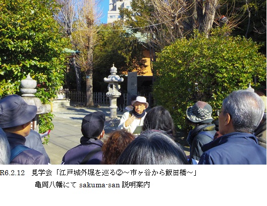 歴史部会の江戸城の史跡巡りは、内堀2回、外堀1回と実施してきました。今回は4回目になります。